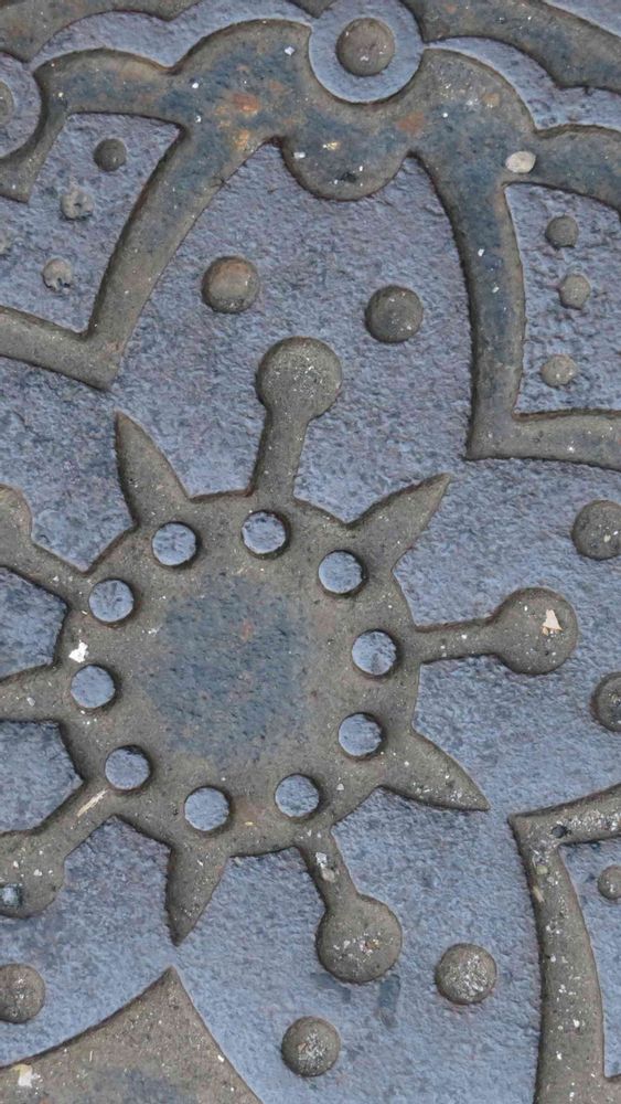 ②1度ワンコ🐺に見えたら、なかなか桜に見えない桜のマンホールの蓋🐶🐺🐶🐺🐶