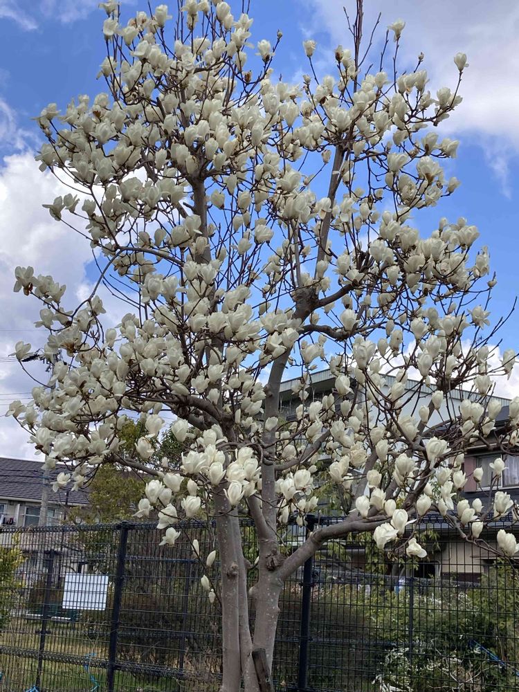 ハクモクレンの花が満開です。別の公園のコブシの花はチラホラです。