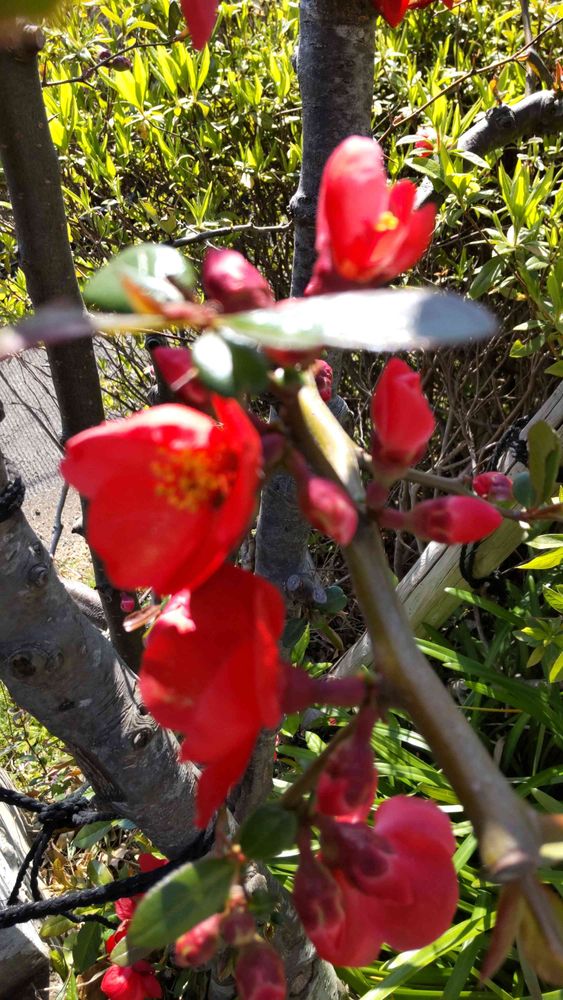 真っ赤なボケのお花が綺麗ですね…❤️❤️