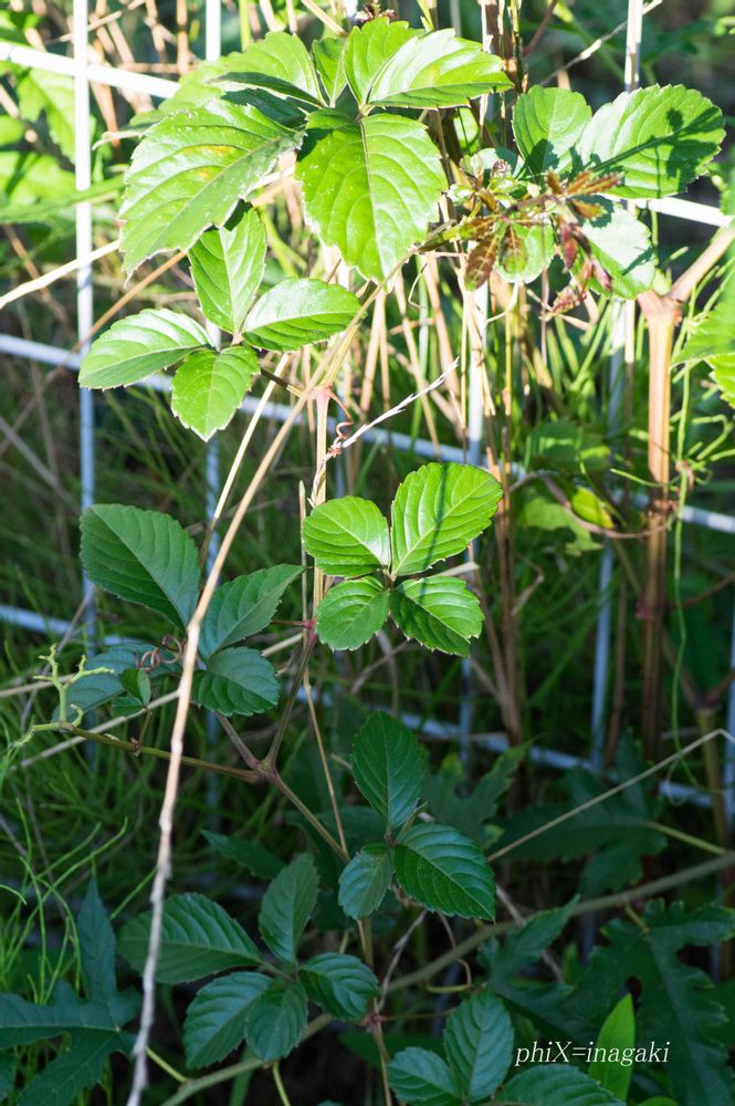 結実するヤブガラシは2倍体である、とのことで、その特徴は、5枚の複葉が一部4枚や3枚の物が含まれることだそうです。この株は、明らかに4枚の複葉が中央に写っています。これが実のなるヤツなのかも。観察を続けてみます。