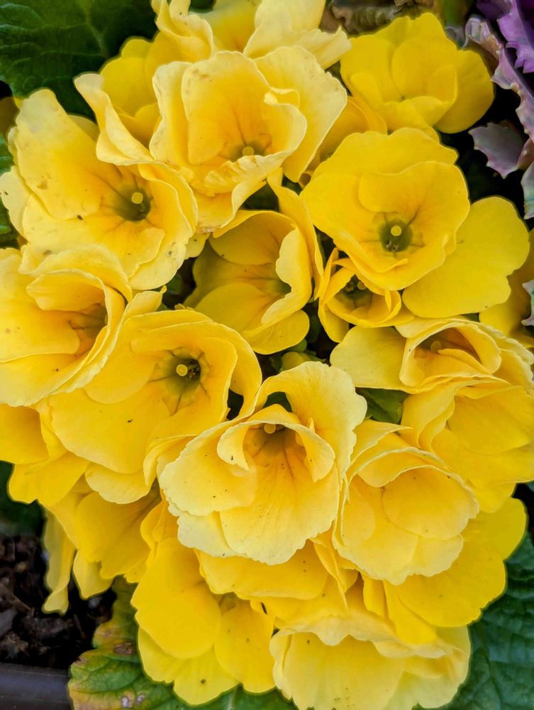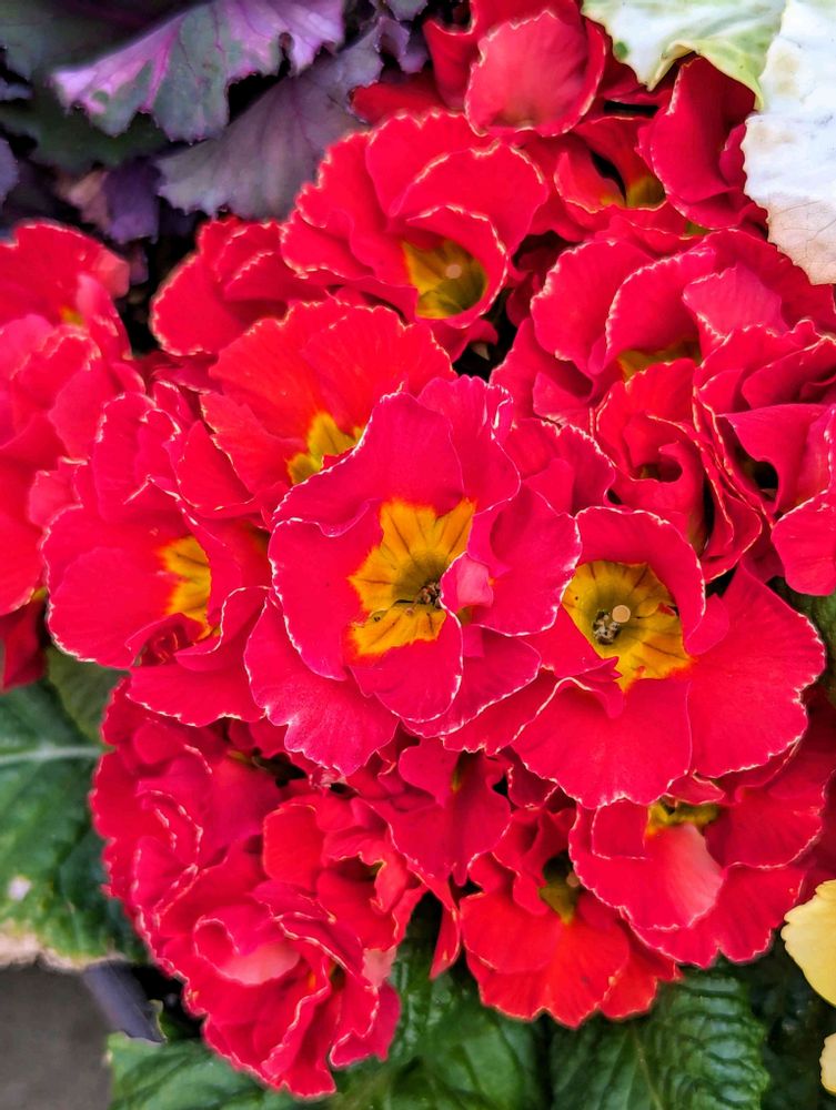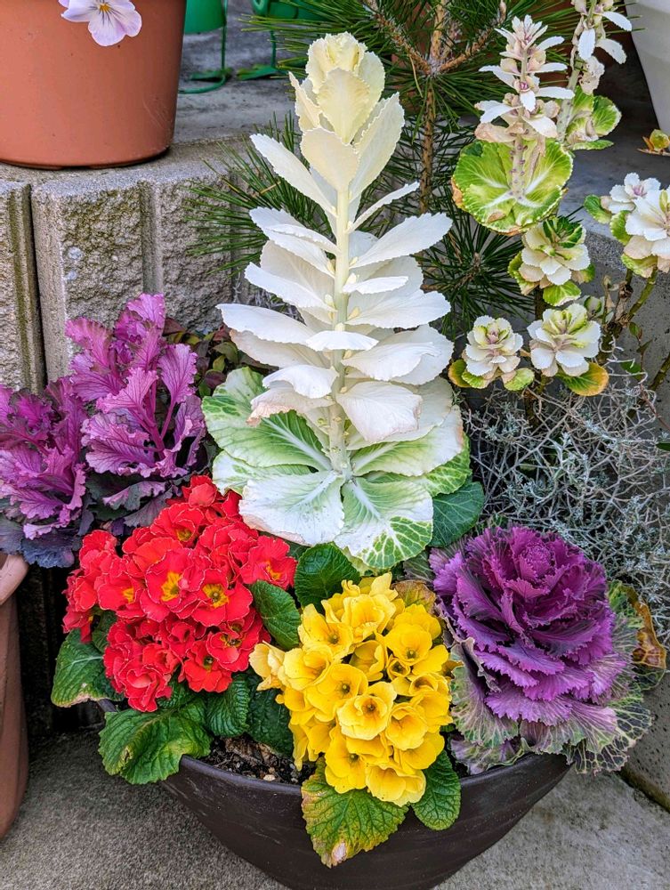 葉牡丹の薹も立ちプリムラのお花も増えて窮屈になってきたかしら〜