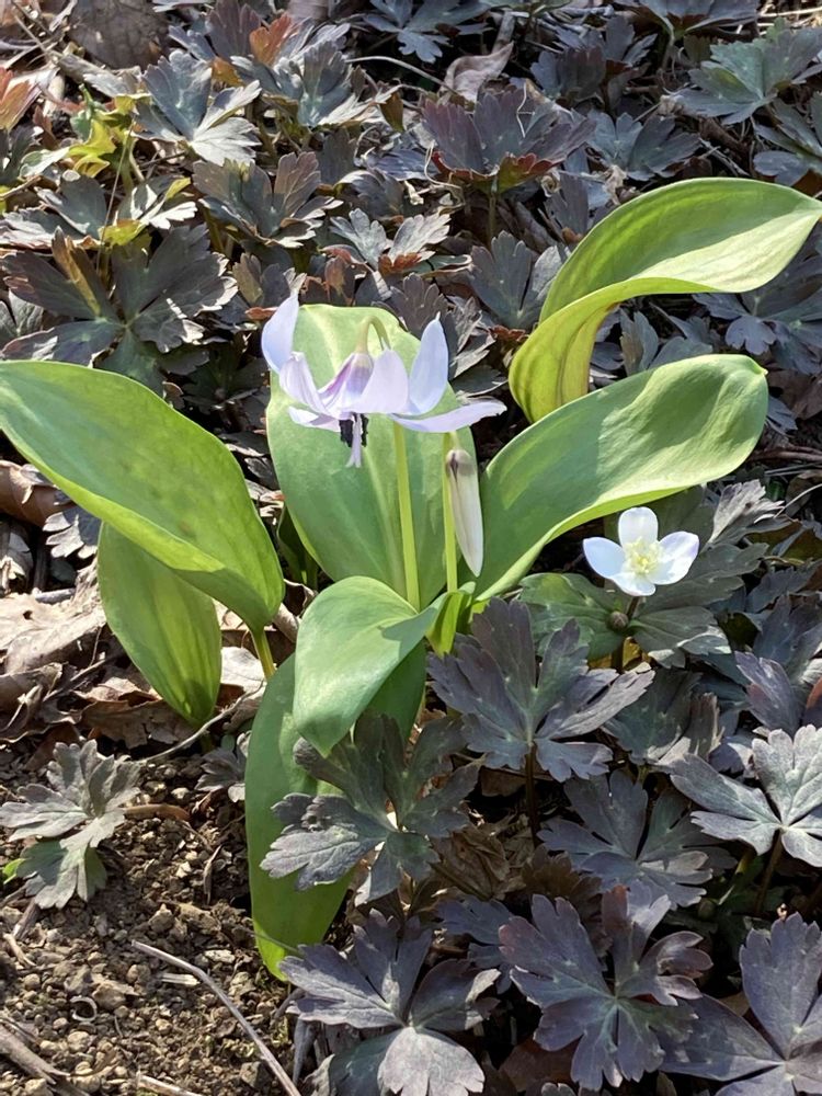 シロバナカタクリとニリンソウのコラボ素敵ですね〜🌿🤍💜🤍🌿😍😍😍