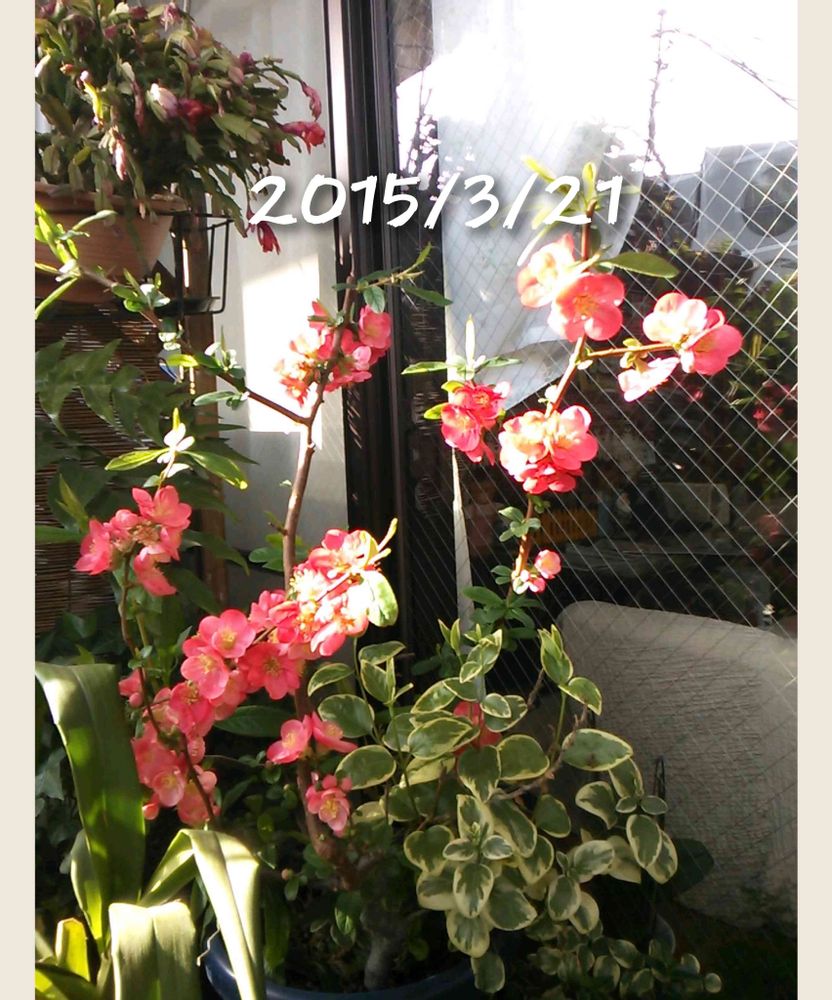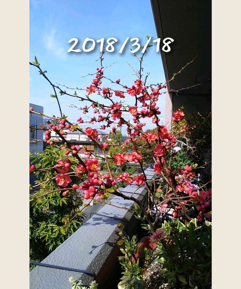 ベランダのボケの花、いい感じで〜🌸❤️🌸❤️🌸