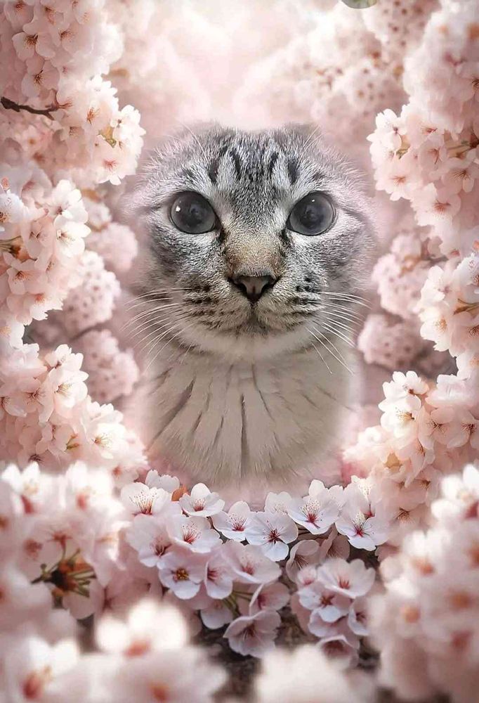 ありゃ😅桜に埋もれたミオくん🌸🌸🐱🌸🌸桜の開花待ち遠しい🌸*・
