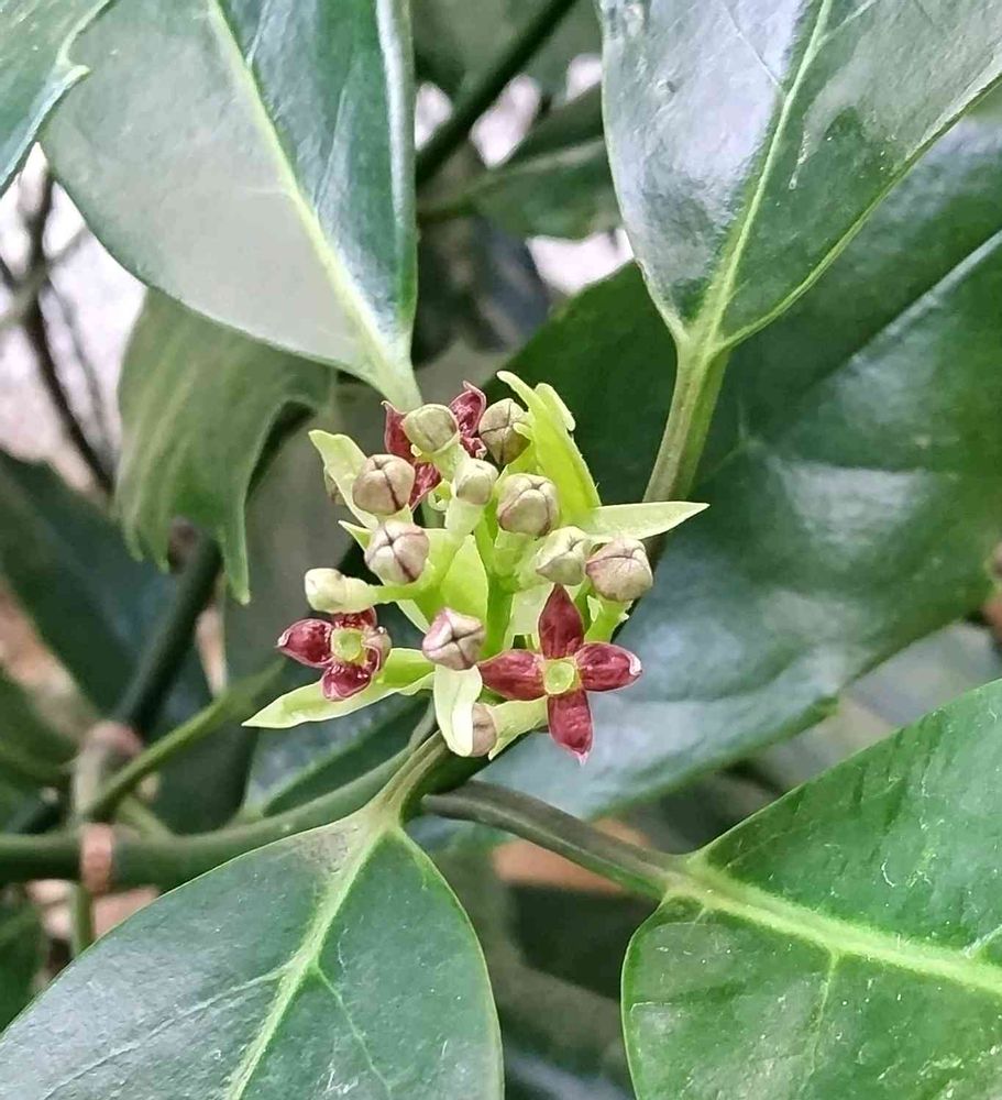 3月17日に投稿したアオキの蕾が咲いていました‼️