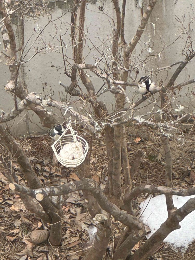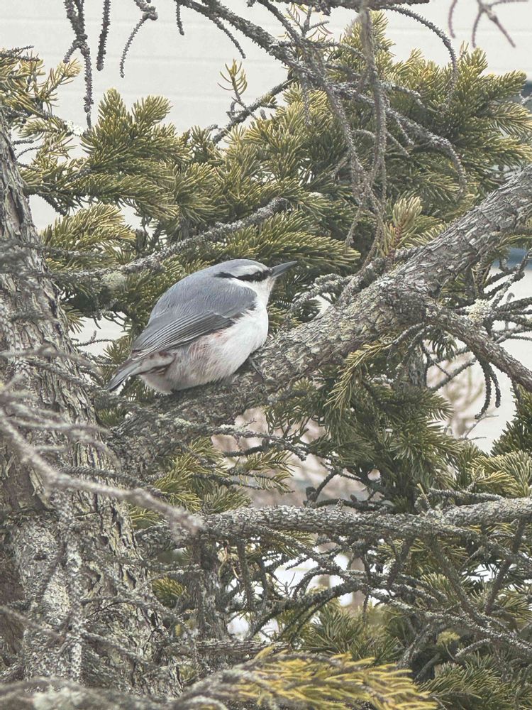 自宅の庭に 来たシロハラゴジュウカラちゃん🤍エゾマツ🌲の上が お気に入り💕