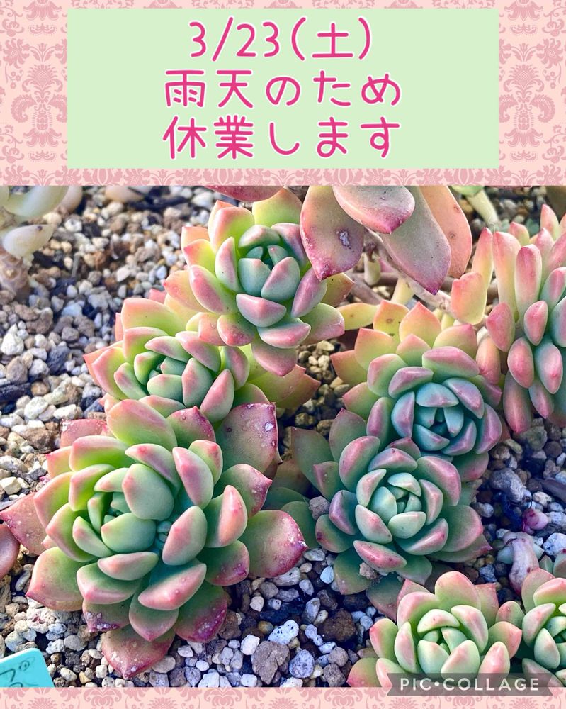 明日3月23日(土)は営業予定でしたが、雨天のため休業させていただきます。