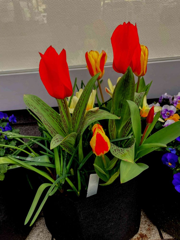 チューリップ🌷の葉に目がいきました👀。 胡麻ふの様な模様か珍しいですね💖