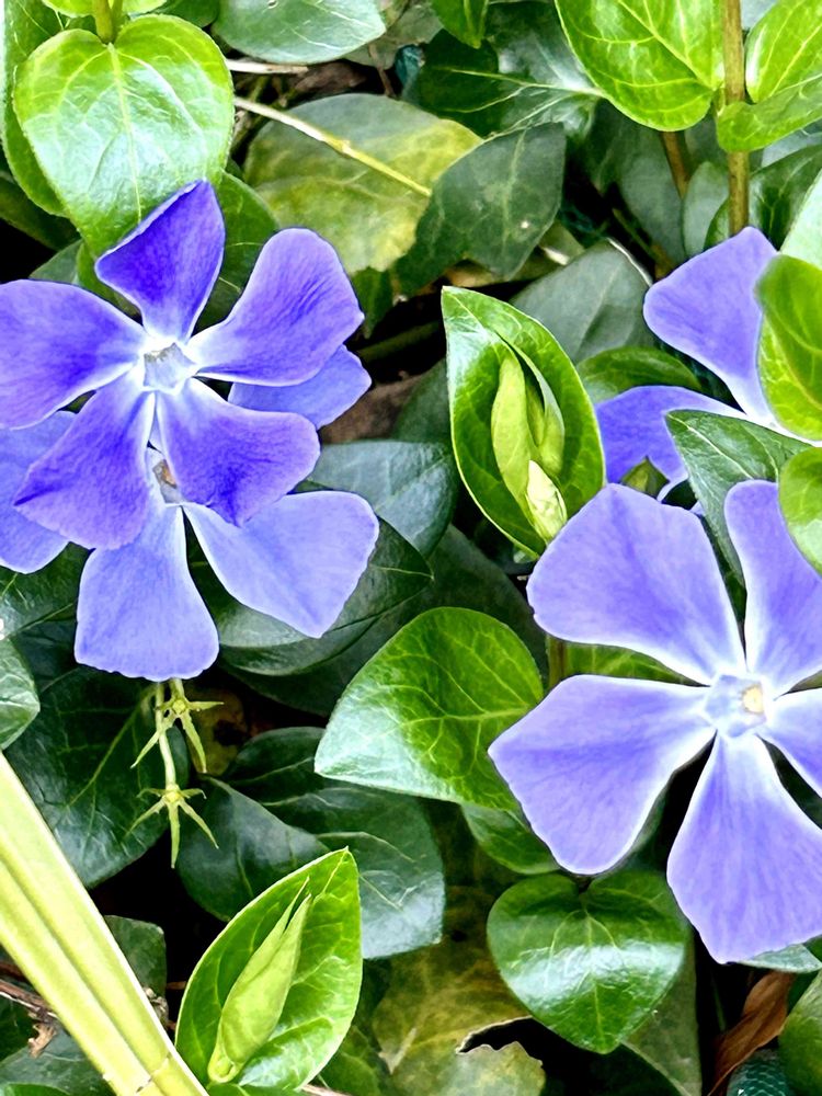 ご近所さんの庭のグランドカバーのツルニチニチソウが可愛く咲いています🤗