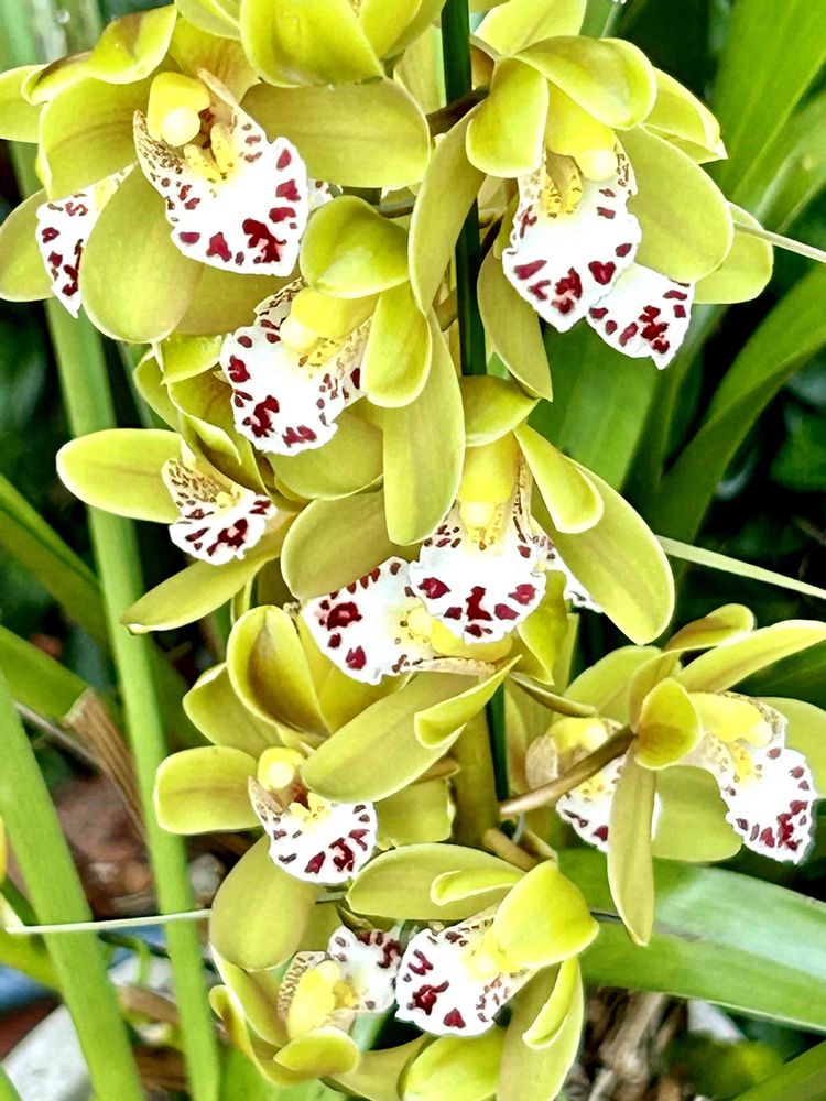 2枚目は同じく庭に、室内で育てられたシンビジュウムの珍しい色の鉢が日光欲してました🌿💕🌿