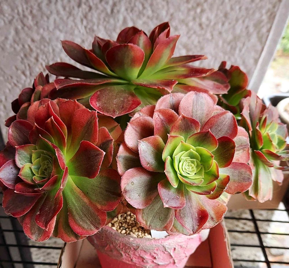 黒法師は、背丈が延びるからって、おしゃれな鉢にいれたかったけど、菊鉢にいれてます、ピンク系のアオエニウムも そんなに延びるのかな~σ(^_^;)?