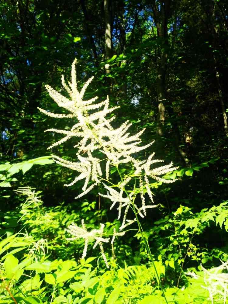おはよう👋😃☀️ございます。久しぶりの快晴で今朝は気持ちのいい朝になりました。森の小道の木漏れ日を浴びたサラシナショウマが嬉しそうです。今日も一日よろしくお願いいたします。