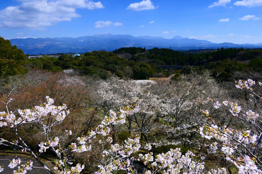 霧島市丸岡公園では、オオシマザクラ等が咲き、霧島連山を遠景に絶景でした🎵