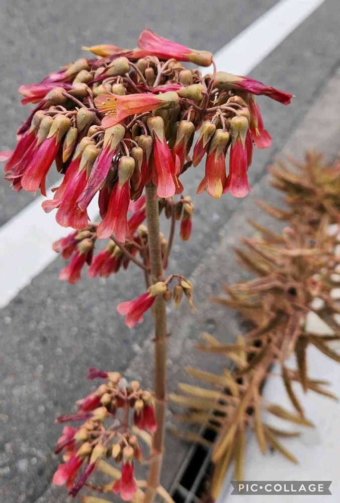 うちにいる昔から放ったらかしでも元気な朧月と同じ多肉が、近所のアスファルトの割れ目から伸びてます😂