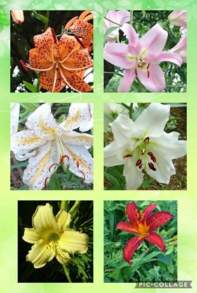 ネットで見てもよくわからなかったですが、GSで調べるからヘメロカリスの皆さんの投稿を見たら右下の濃い赤いユリも、左下の黄色いユリもヘメロカリスのようですし、右上はササユリですね。ありがとうございました。スッキリしました(≧▽≦)♪