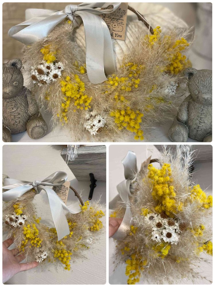 ドライのパンパスグラスとアンモビュームを使ってミモザの半リース