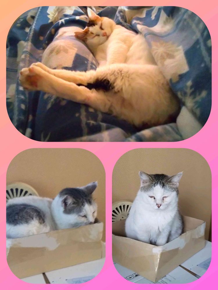 にゃんさんは段ボールで寝ませんがママさんは段ボール好き😻