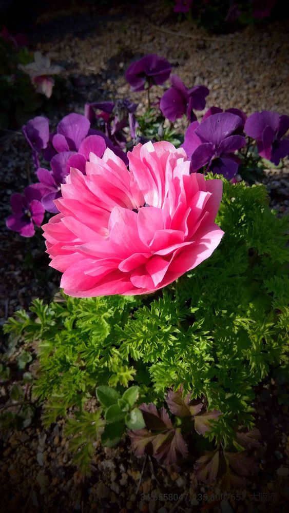 ポタリング中に見つけた、一輪のアネモネです。ピンクと紫のコントラストがいいですね。
