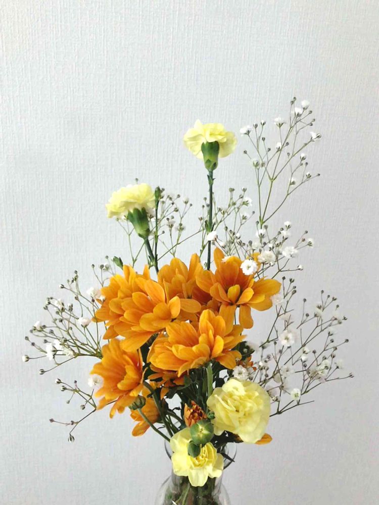 今回はビタミンカラーの菊があったのでカーネーションと合わせてみました🙏