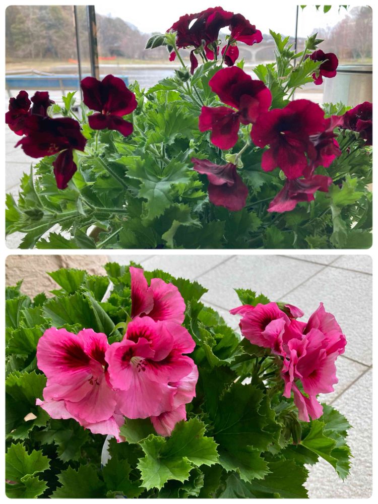 "21世紀の森と広場"のパークセンター内に飾られた花がプリムラマラコイデスから「ペラルゴニウム」に変わっていた。