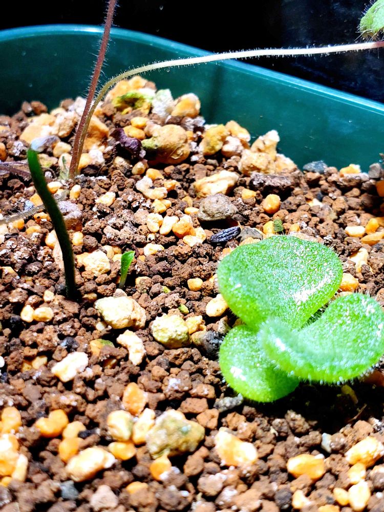 忘れた頃に発芽したのは、多分パラドクサムかな?真ん中左が10月に発芽したパラドクサムの実生一年生。隣の至近距離に新たに出てきましたが、この時期からだと夏の休眠に間に合うか心配😥