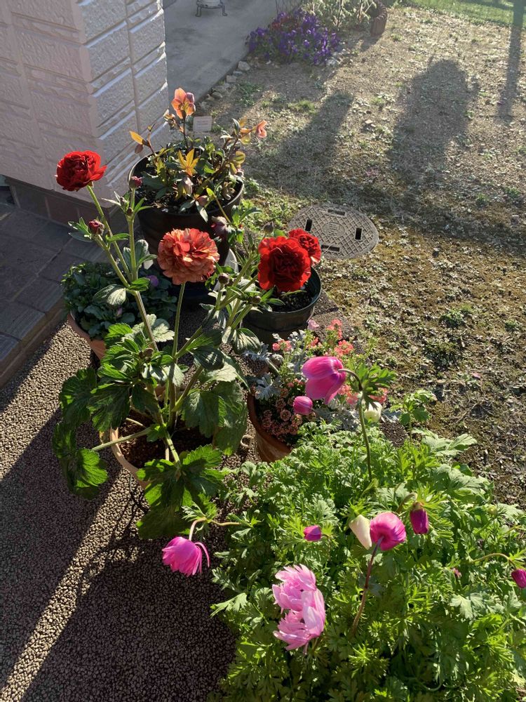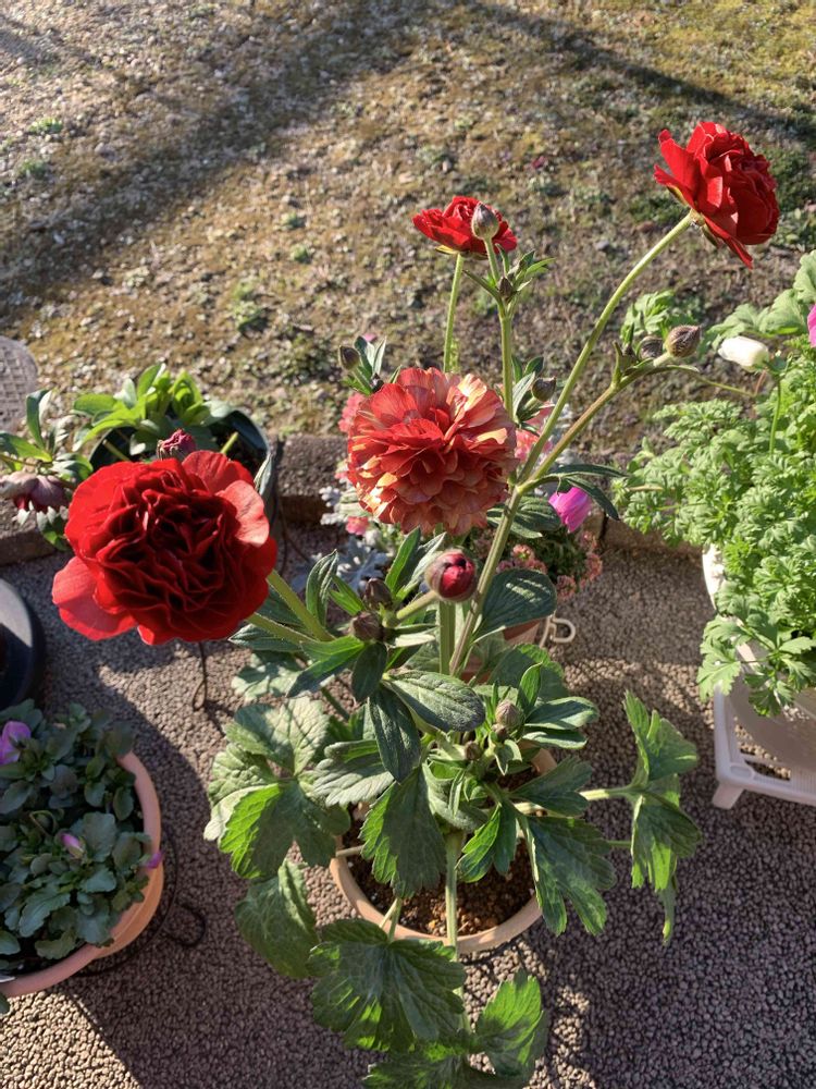 ラナンキュラスラックスのハデス。一年目なので早めにお花を摘んで、球根を休ませようかな? 蕾も沢山上がってきました♪