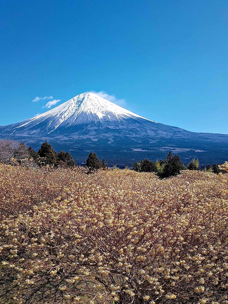 裾野の広い雄大な富士山🗻とミツマタのpicとても素敵ですね〜、ミツマタも可愛いですね🥰