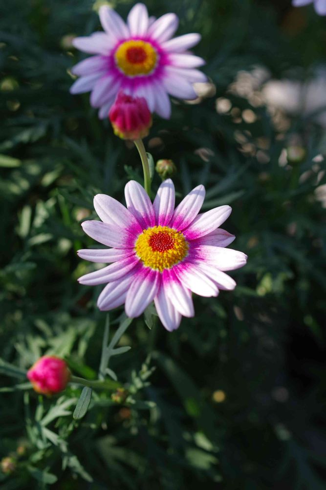 以前マーガレットは庭や花壇の花のイメージがあって、あまり興味がありませんでしたが、最近は鉢植え向きの品種も増えて、バラの開花前から可愛い花が楽しめるでハマってます☺️
