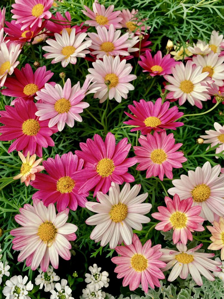 今日のお花、マーガレット、様々な色で春を彩り、綺麗ですね🩷💗🤍💛🌿😍