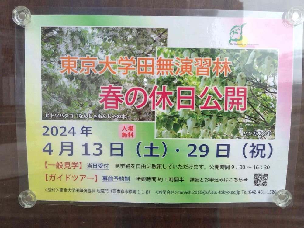 ジョギングコース中に東京大学の田無演習林があり来月写真のようなイベントをやるそうです👏