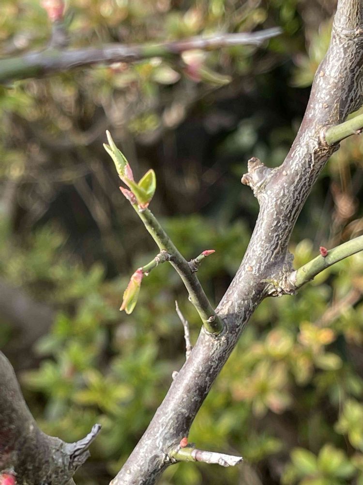 ➍ 並んで立ってるカリンの枝にもかわいい蕾が膨らみはじめました♪