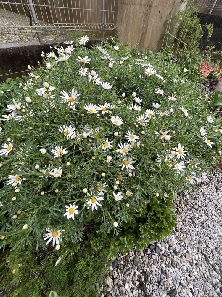 我が家にある唯一のマーガレットです☺️ 今朝の花壇より☔️