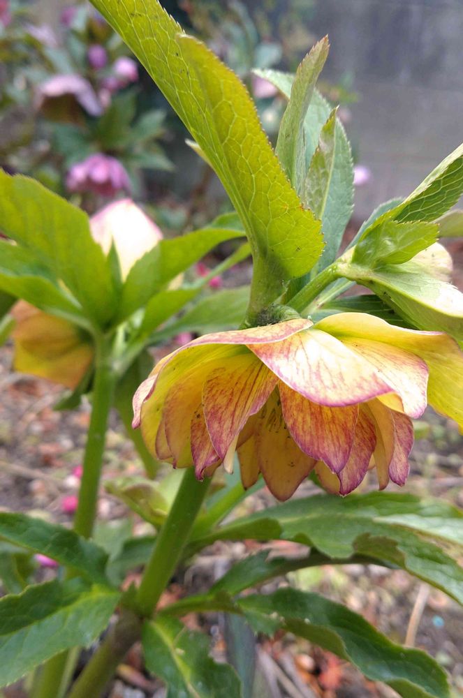 庭のクリスマスローズ(ダブル イエローピコティ)さんです(*^^*)♡