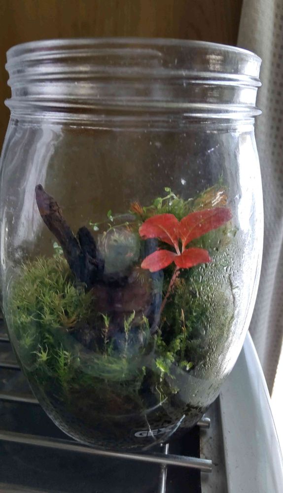 風邪気味でスッキリしなくって…さっき顔洗った私です😆苔も素人ですが…ライト下に置いて見てると癒されます🥲
