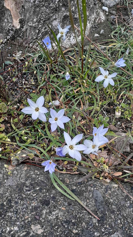 ④バス停🚏🚌横の桜の木の下でイフェイオン(ナハニラ)が咲いてました🎵ブルーは出遅れなのかな😅まだちゃんと開いていません💙