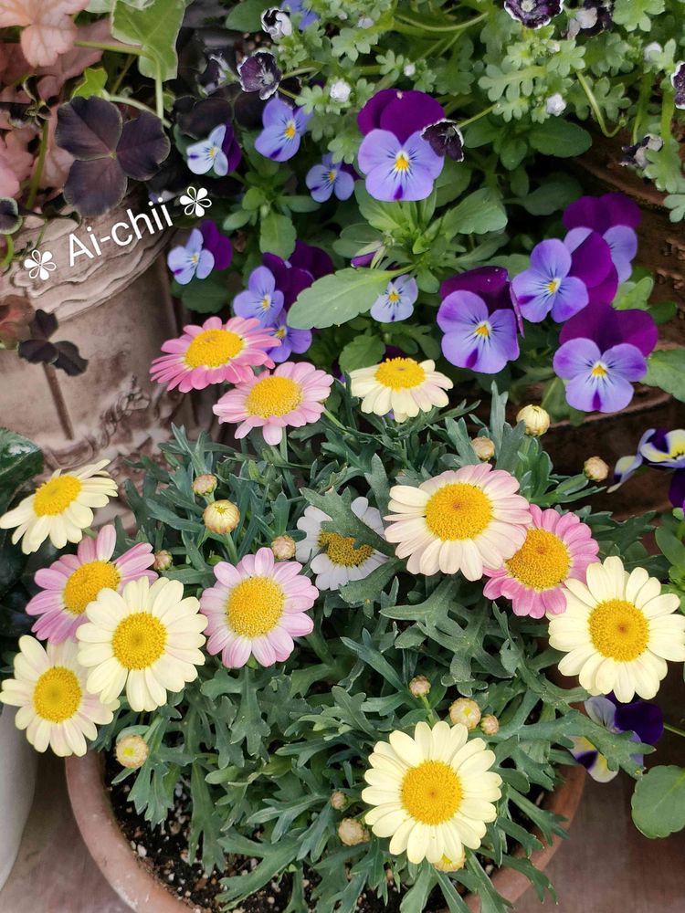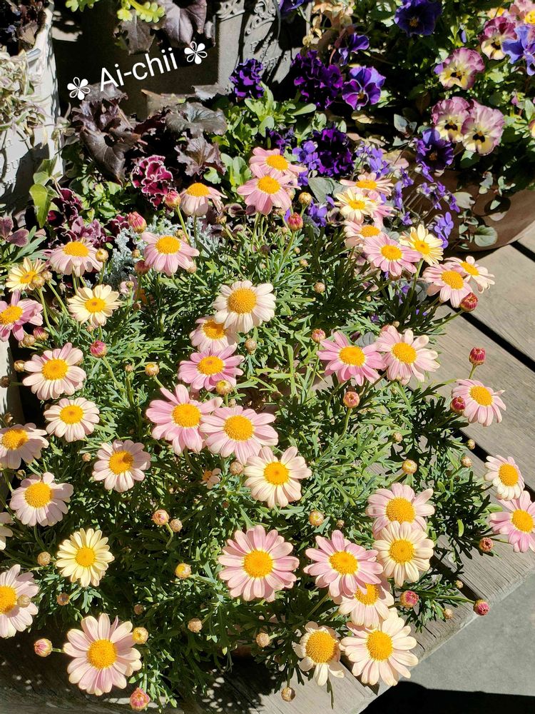 違うマーガレット挿し芽で根付いてたのは軒下に置いてました!それはカタカタとして育ちました‼️