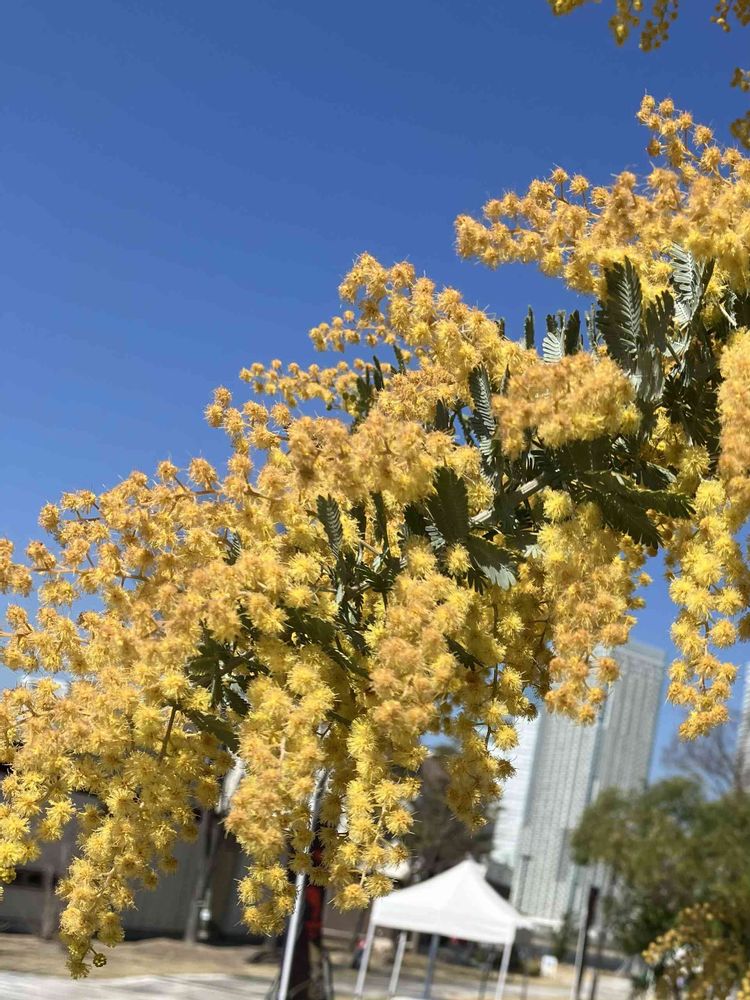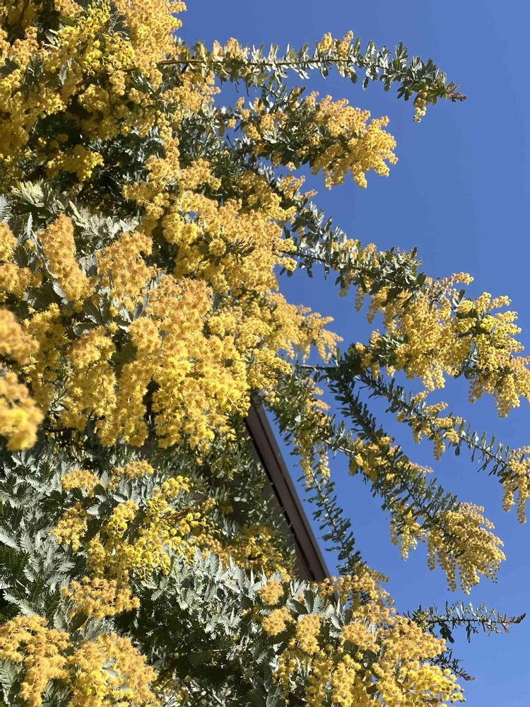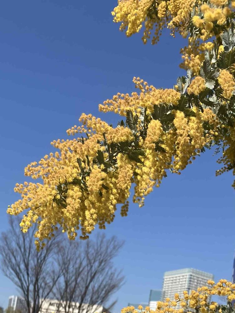 先週のお天気の日に、ミモザがモフモフと青空に映えていました♪