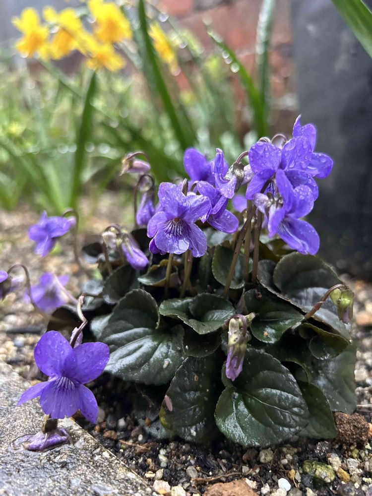 黒葉スミレ?ビオラ?ラブラドリカさん💜花壇の手前に植えて数週間。
