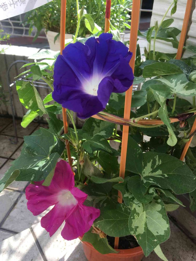 4色あさがお🏵って1つの苗に4色咲くんじゃなくて4株色違いが入ってるんだって👴🏻さんが説明してくれた。