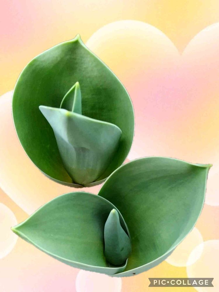 風除室の鉢植えのチューリップ お花はまだだけど 葉っぱが可愛いくて 妖精がいそうな気がします🌷🧚♂💚🧚💚🌷