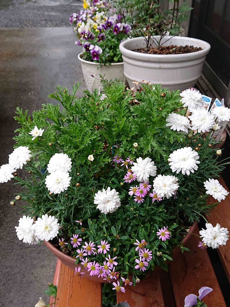 玄関の横で可愛く咲いてるマーガレットさん🎵😊