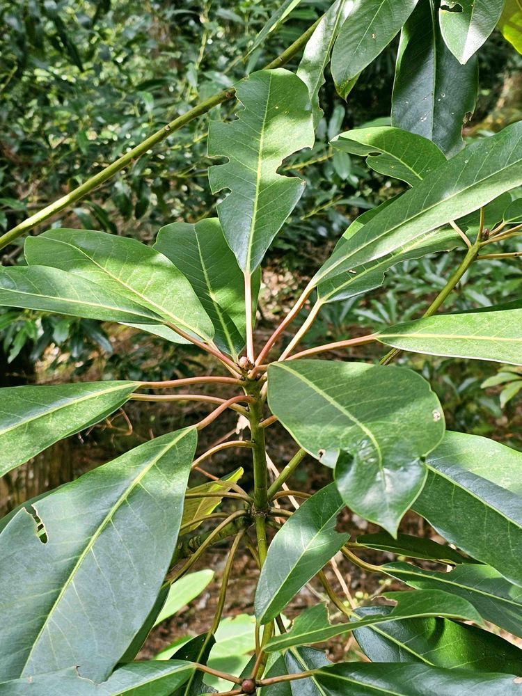 稀に葉柄他全体に青い個体が見られるが