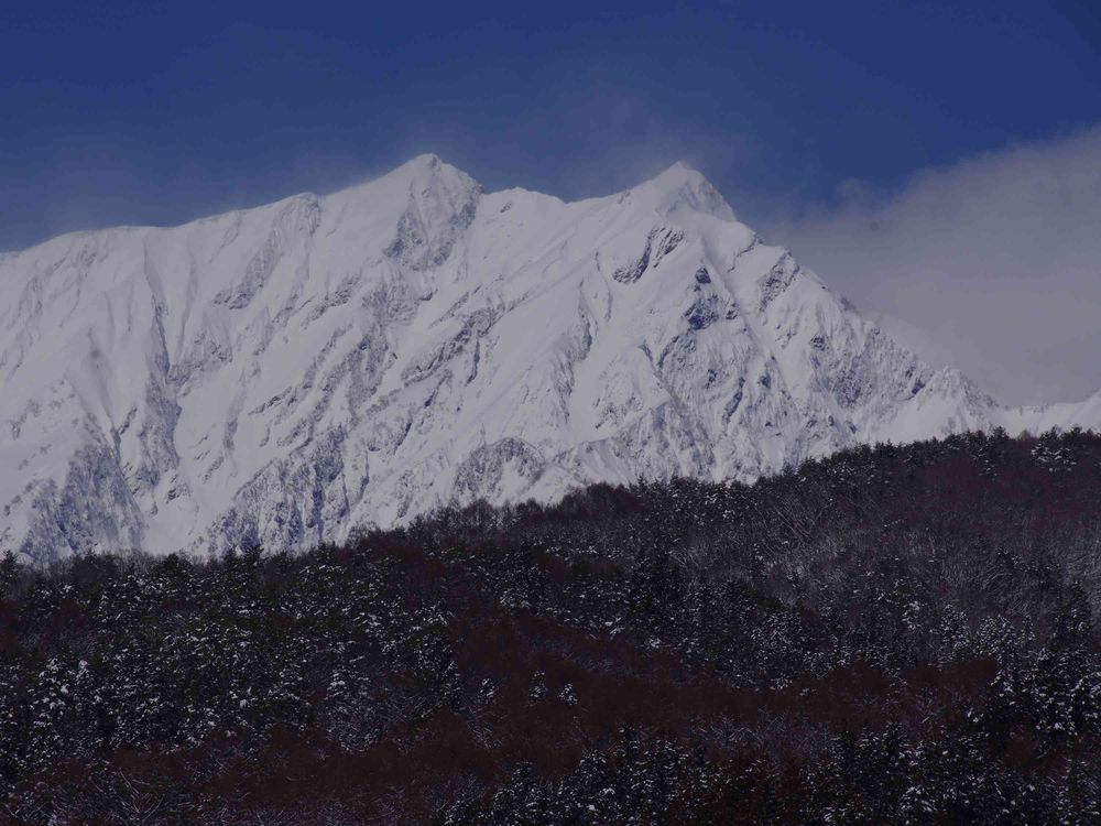 北アルプスの山々の上部は木がなく岩山なので雪が付くと特に綺麗ですネ😍