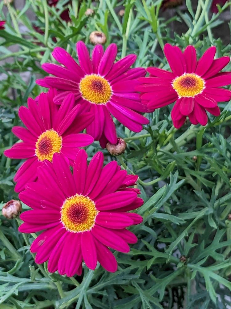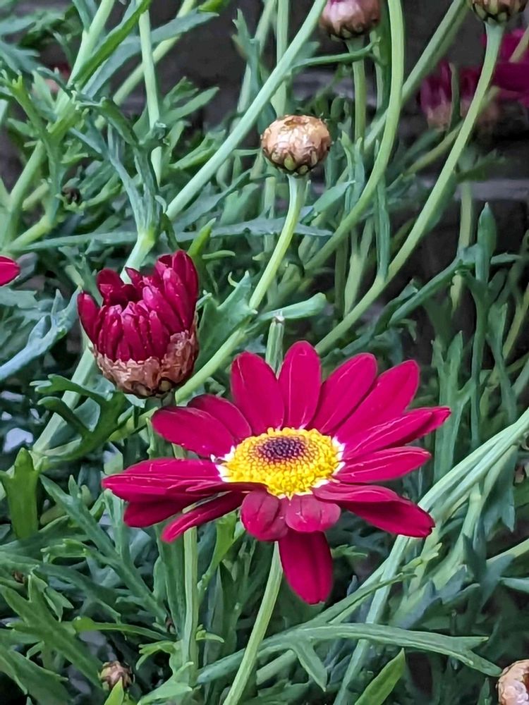 ピンクや黄色、白はよく観ますが、こんなに鮮やかなマーガレットは🔰です✴️✨🎶