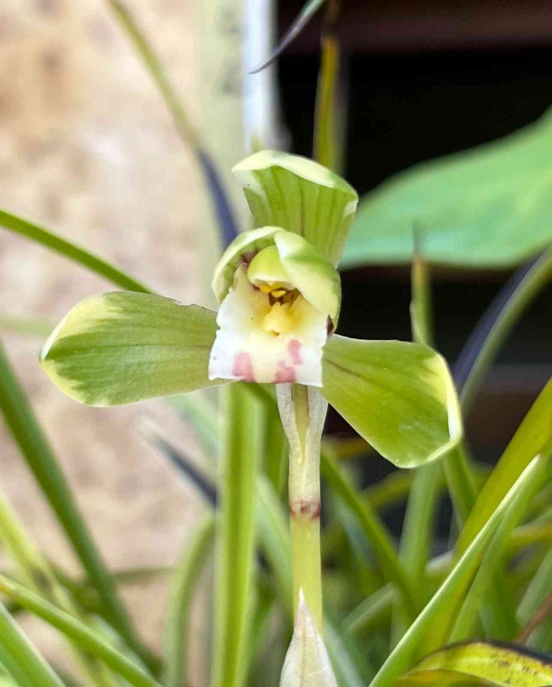 春蘭の上部がおばあさんが被るほっかむりに似ていて、下部がおじいさんの髭に似ていることからつけられたという説があります。