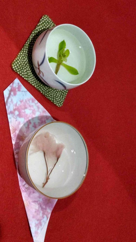 ⑤ 昨年4/10おめでたい日でした 春蘭 桜を浮かべたお茶です