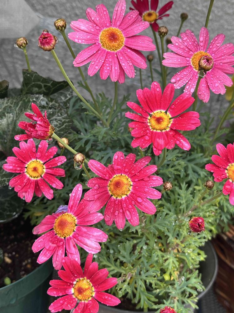 雨に濡れて色が鮮やかなマーガレットストロベリーホイップ🍓