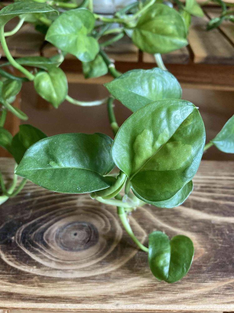 木目の台座は、伸びたツルもゆったり飾れるように置いたものでした🪴