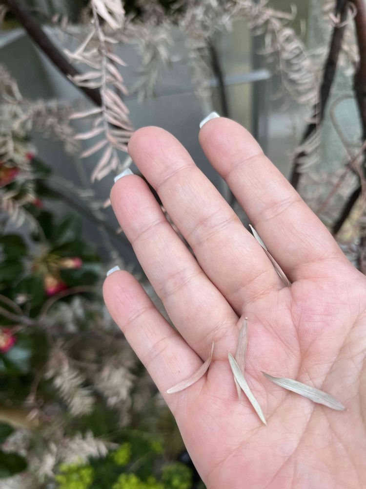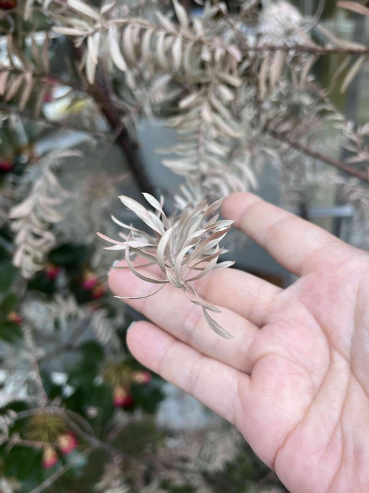 葉っぱは触ってみたらパリパリと崩れてしまいました