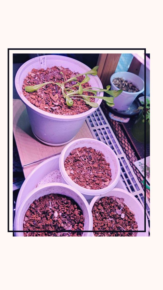 試し蒔きの苗を鉢植えにして、さらに種蒔きしてみました~